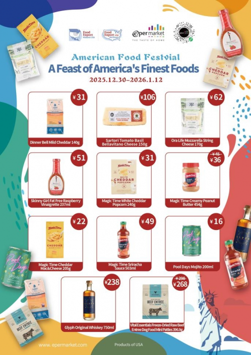 冬日暖阳,正是品味与囤藏美好的时节。现在,只需轻点指尖,访问 Epermarket官网、微信小程序或APP,即可一键直达“美馔云集,欢宴无界”美食节专场。让我们用来自大洋彼岸的纯正风味,为您的新年聚会增添亮点,让每一餐都成为值得期待的美好仪式。